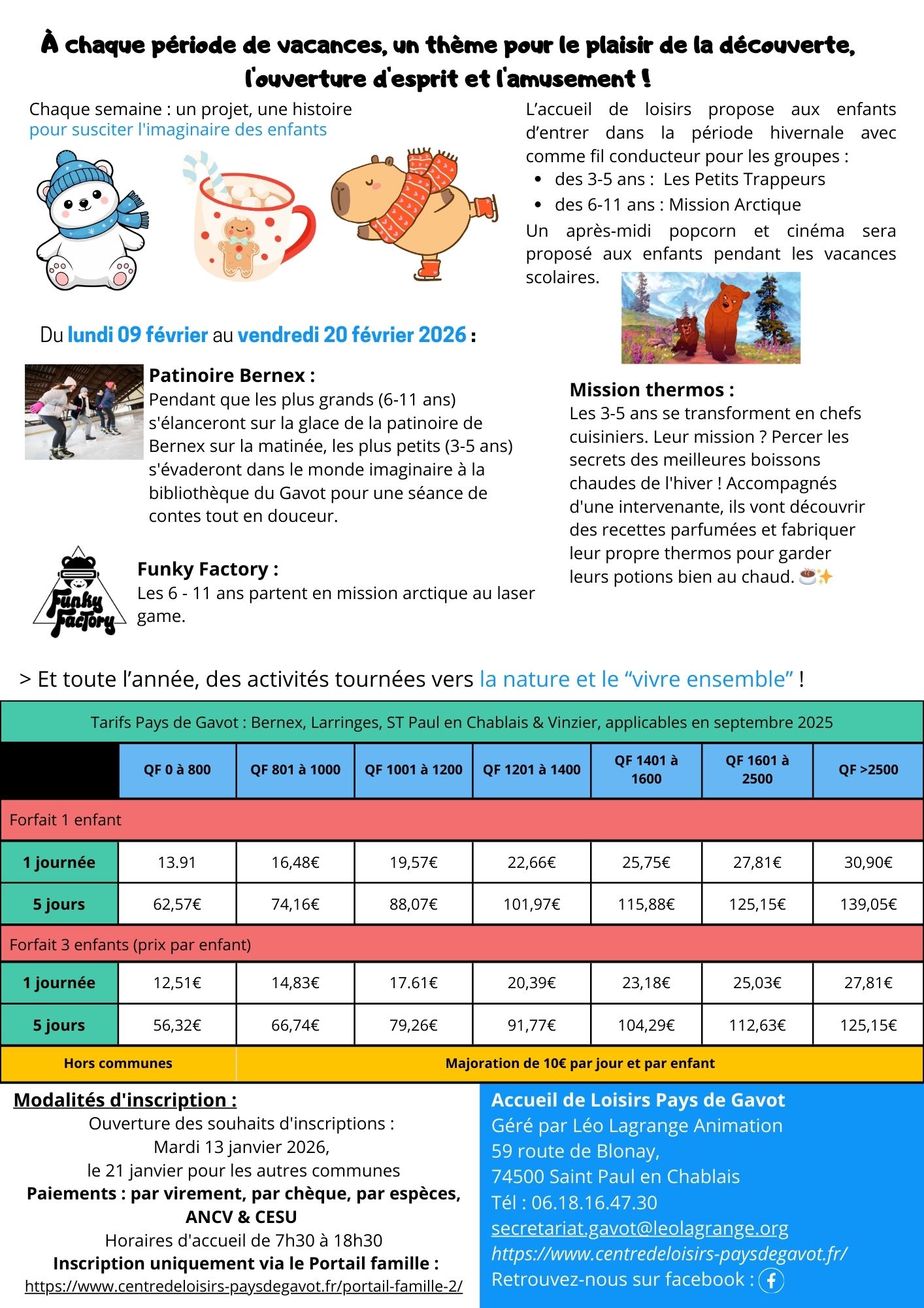 , avec des activités spécialement choisies pour chaque âge !