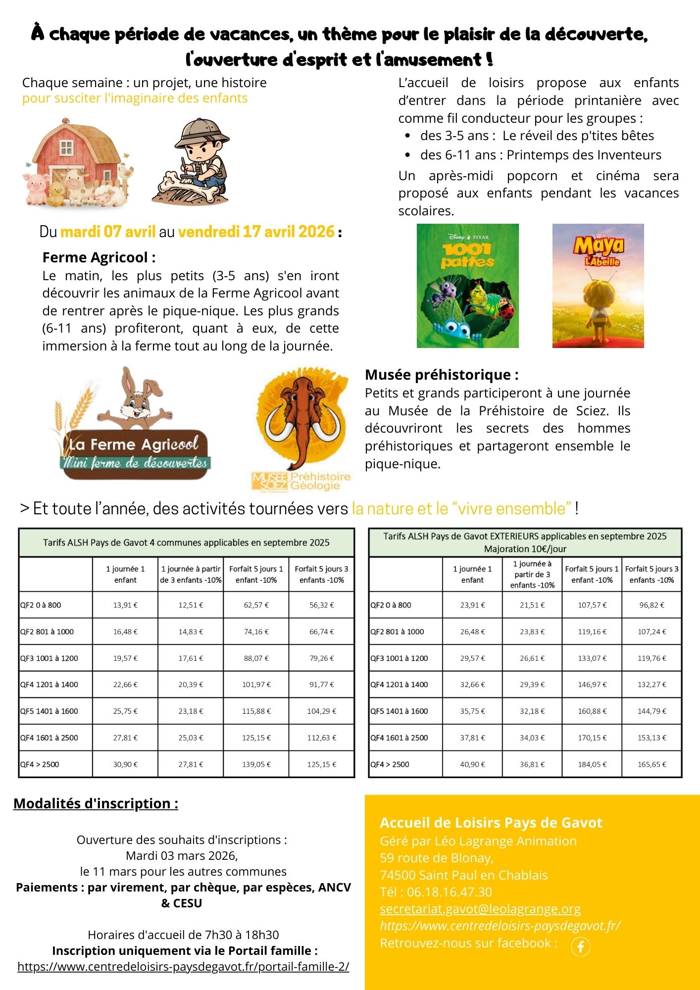 Entre une rencontre avec les animaux de la ferme Agri’cool 🐣 et un grand voyage dans le temps au Musée de la Préhistoire 🦴, il y en aura pour tous les âges !